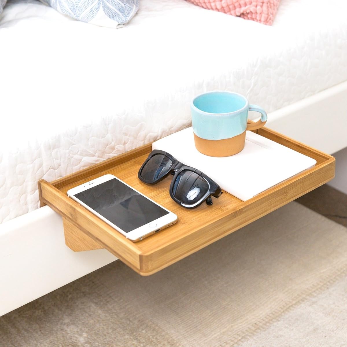 However, the principle concern with many people with this sort of bed is actually safety. This simple invention hooks over the edge of a bunk bed and gives the bed a flat surface for keeping a book, torch or bedside lamp. The songesand bedside table has an open shelf for easy access and a closed shelf for your bedside essentials. There are tons of bedside tables, nightstands, and other bedroom furniture on display at every bassett furniture store. The bedside shelves for beds have been built from different materials like metal, wood, and plastic.